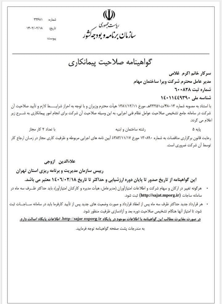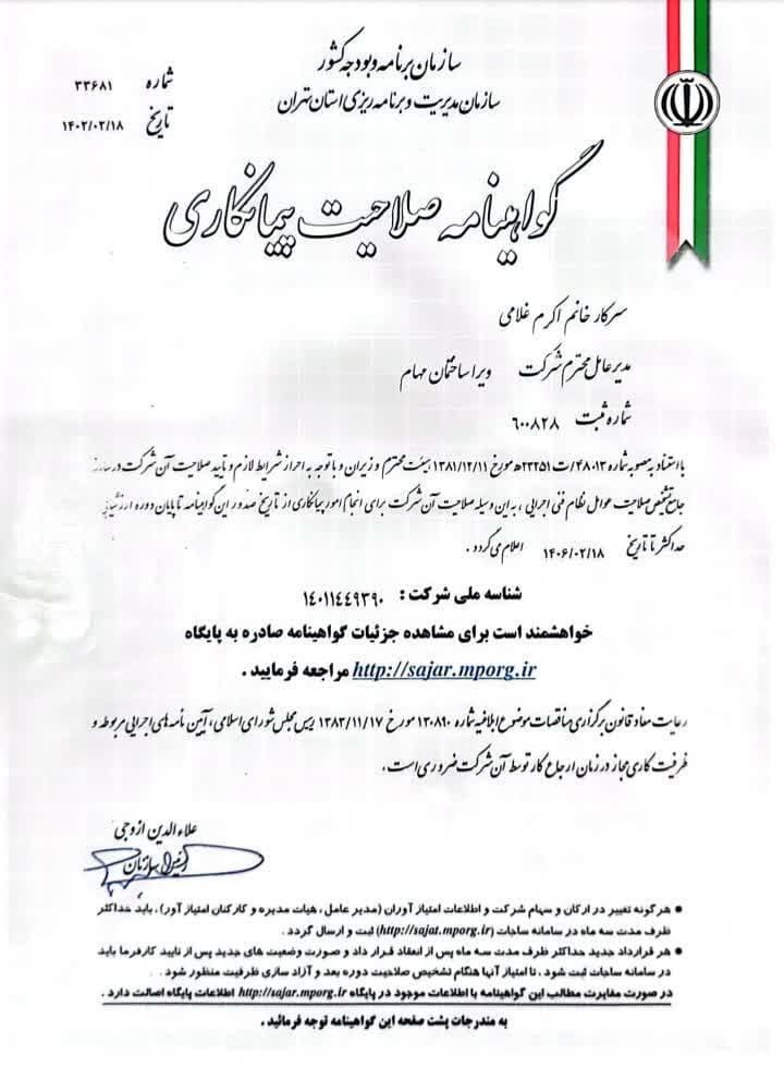 گواهینامه های شرکت ویرام